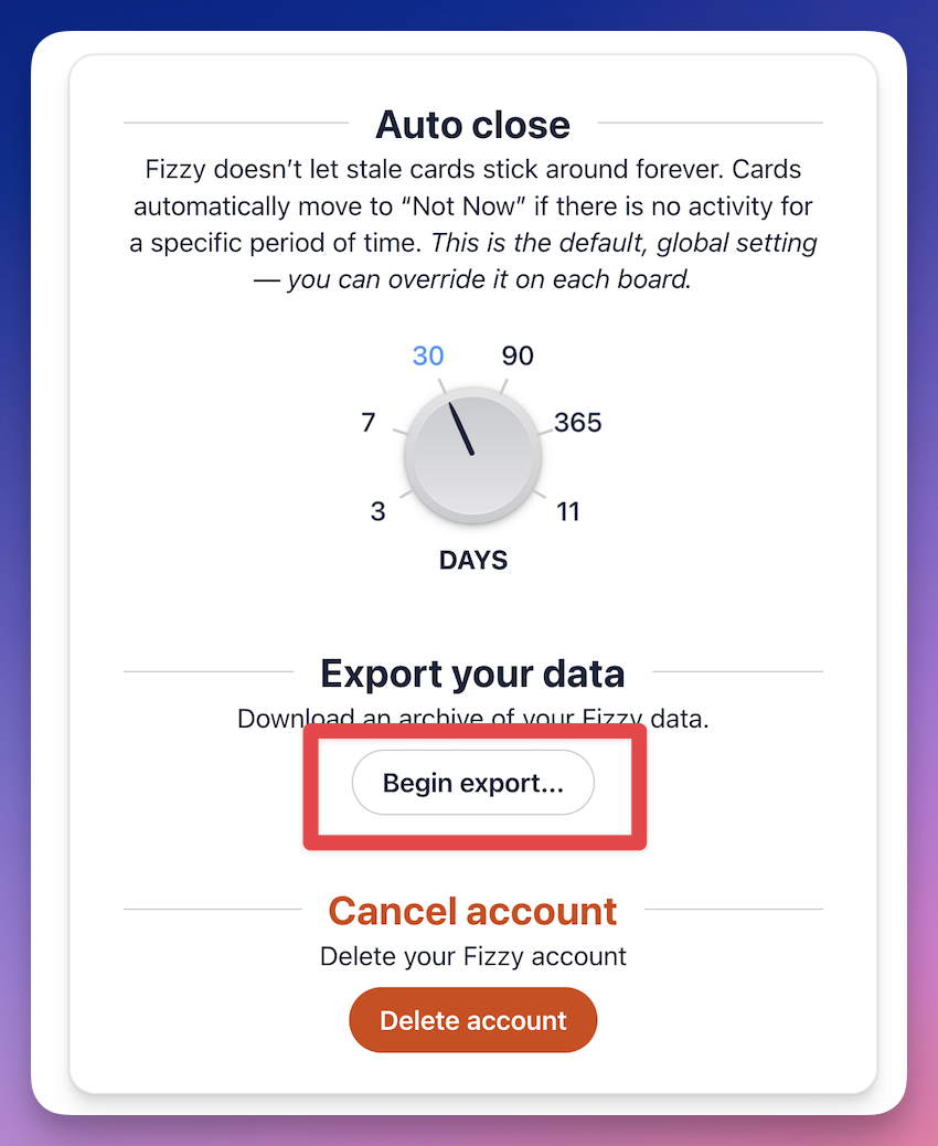 Fizzy's Auto close feature makes it simple to keep your boards current so you can stay focused on what matters now.