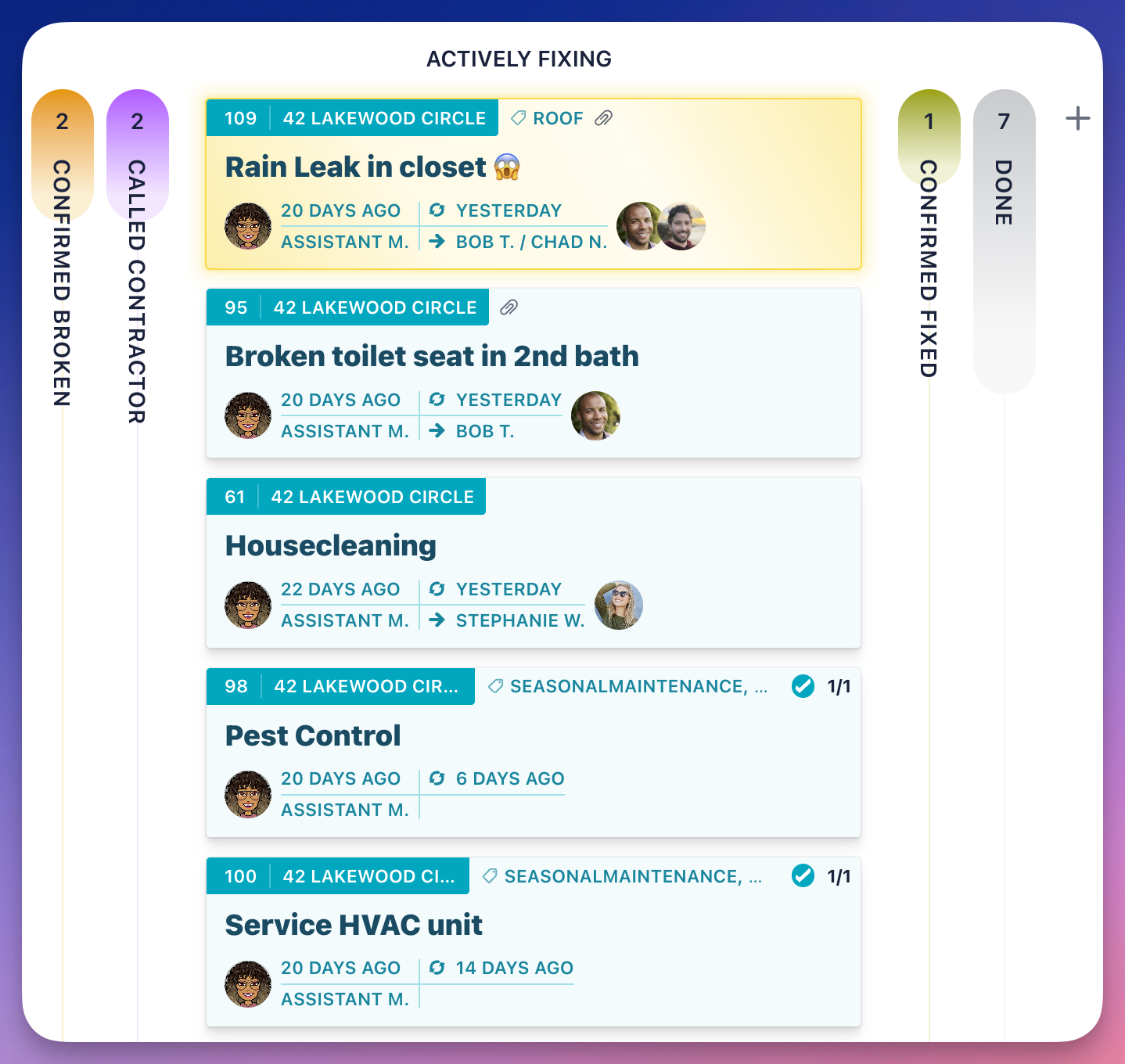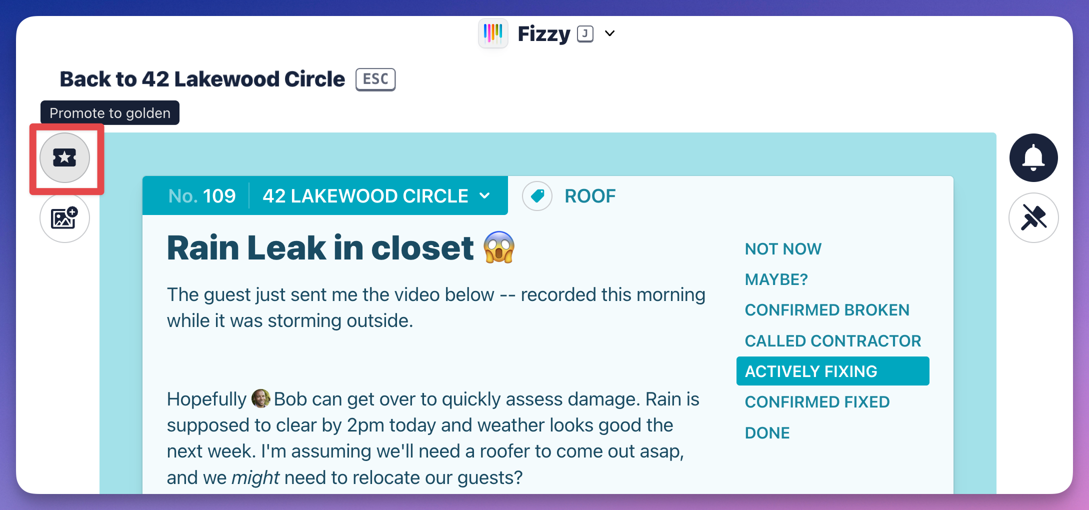 Screenshot of a board with the golden card at the top of the Actively Fixing column.
