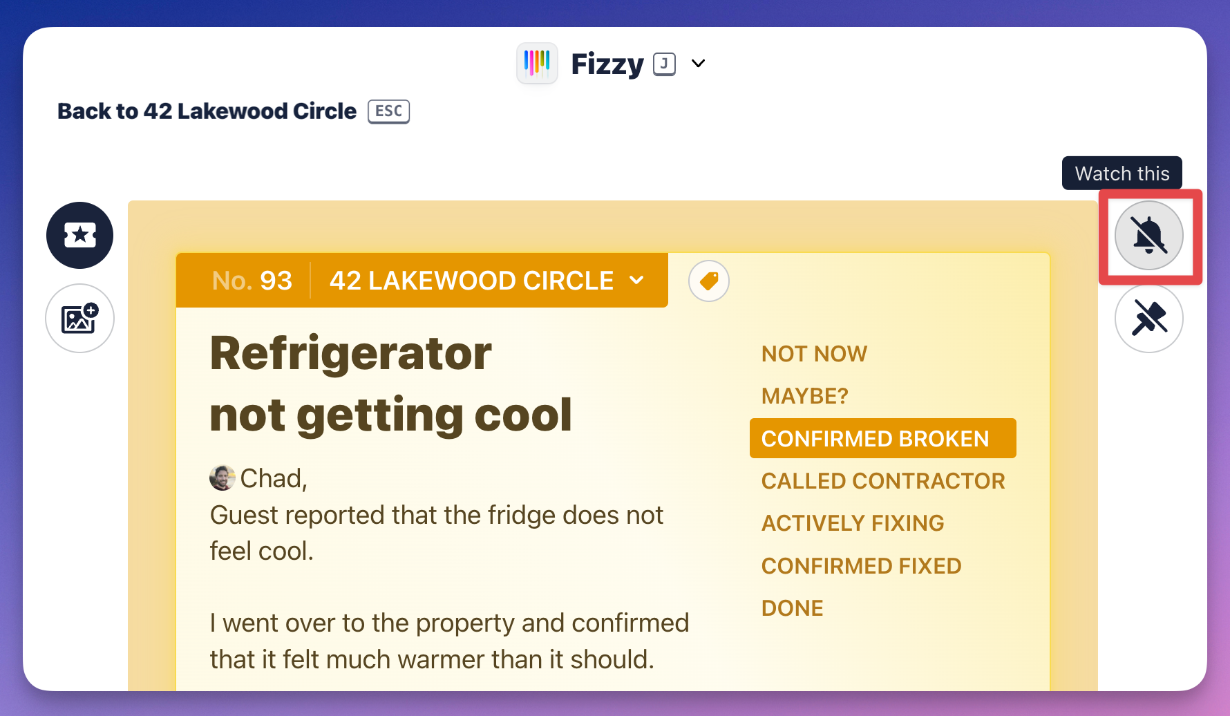 Stay focused by watching just the cards that are relevant to you. Click the "notify" icon to watch a card. You'll then receive notifications when there's new activity there.