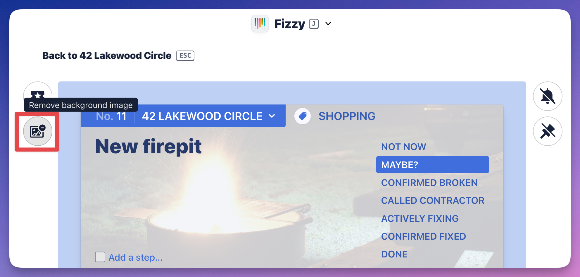 Fizzy comes beautifully designed and lets you personalize your cards with your own background images. Click the photo icon located on the top left and select an image from your device. Use the same button to remove the image.