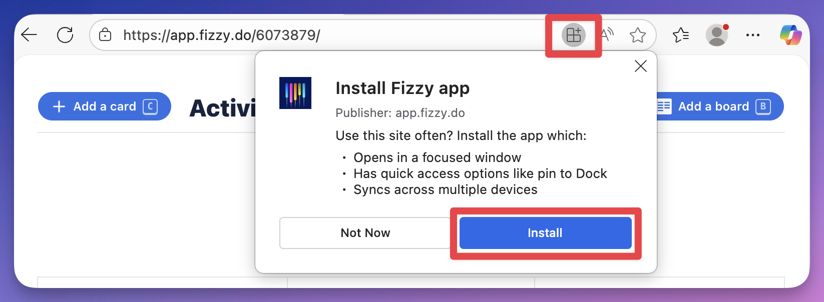 Access Fizzy like you would any other app on your desktop by installing Fizzy's PWA (progressive web app).